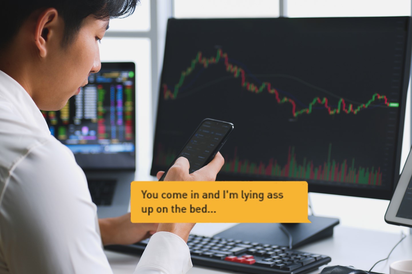 Definite points for effort here. You know the one. “You come in and I’m ass up on the bed…” etc etc. Lots of room for creativity. This is the kind of chat you get while watching Netflix and then before you know it, Schitt’s Creek is on pause and you’re having an impromptu wank and hoping your flatmate can’t hear you. That’s hot.