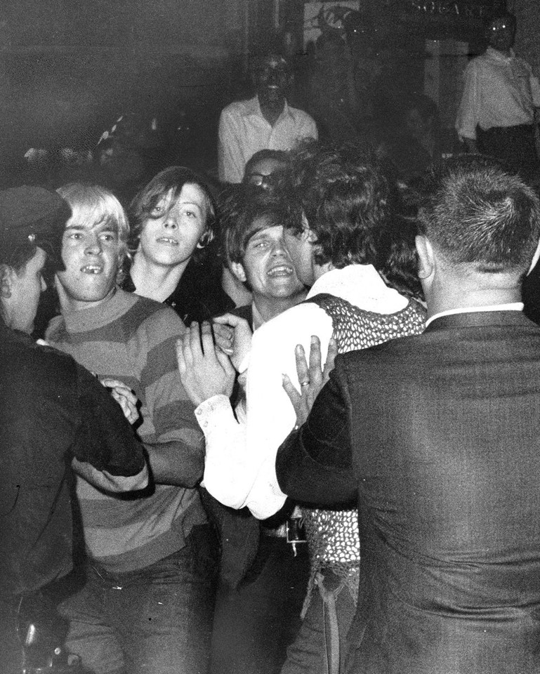 Stonewall Inn nightclub raid, June 28, 1969. Crowds attempt to impede police arrests outside the Stonewall Inn on Christopher Street in Greenwich Village.
