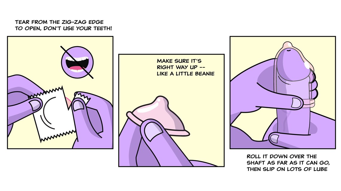 - Check the use-by date on the condom wrapper – if it’s expired, throw it out and use a new one.