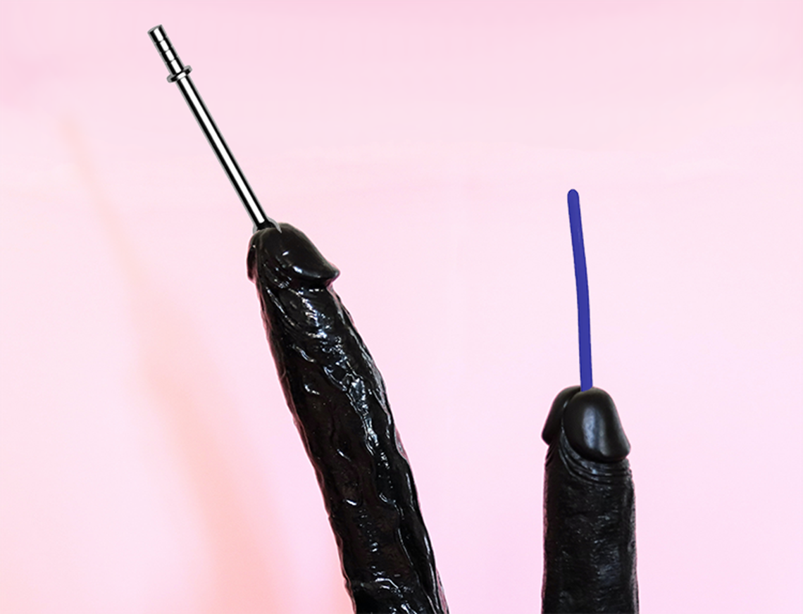 First of all, be careful with what you’re sliding down your cock. Ideally you want surgical grade sounding rods + keeping them sterile is super important. Lube is also key here to avoid tears (ouch!). Risk of transmission of HIV and STIs is really low, just avoid sharing sounding rods. The biggest risk is injury, so take it slow and try talking to someone who knows what they’re doing.