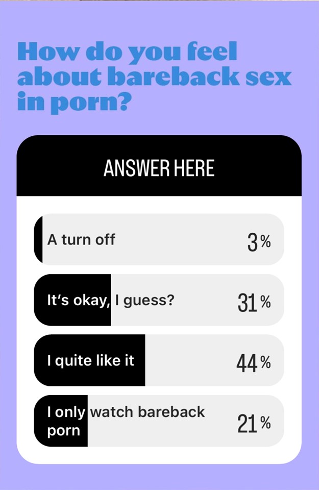 NB: If you’re in the 3% who find bareback sex a massive turn off, that’s okay too! Your perspective is equally valid.